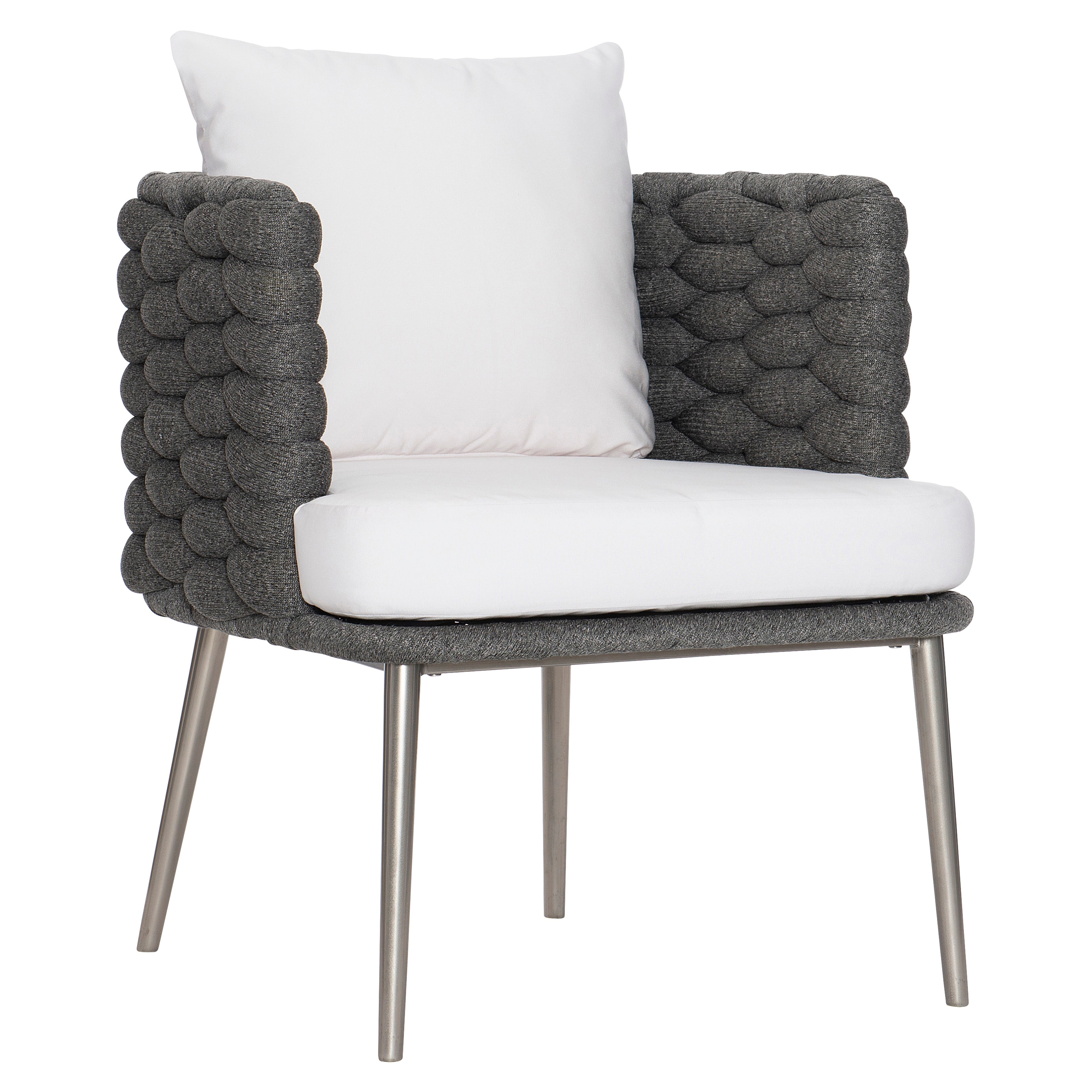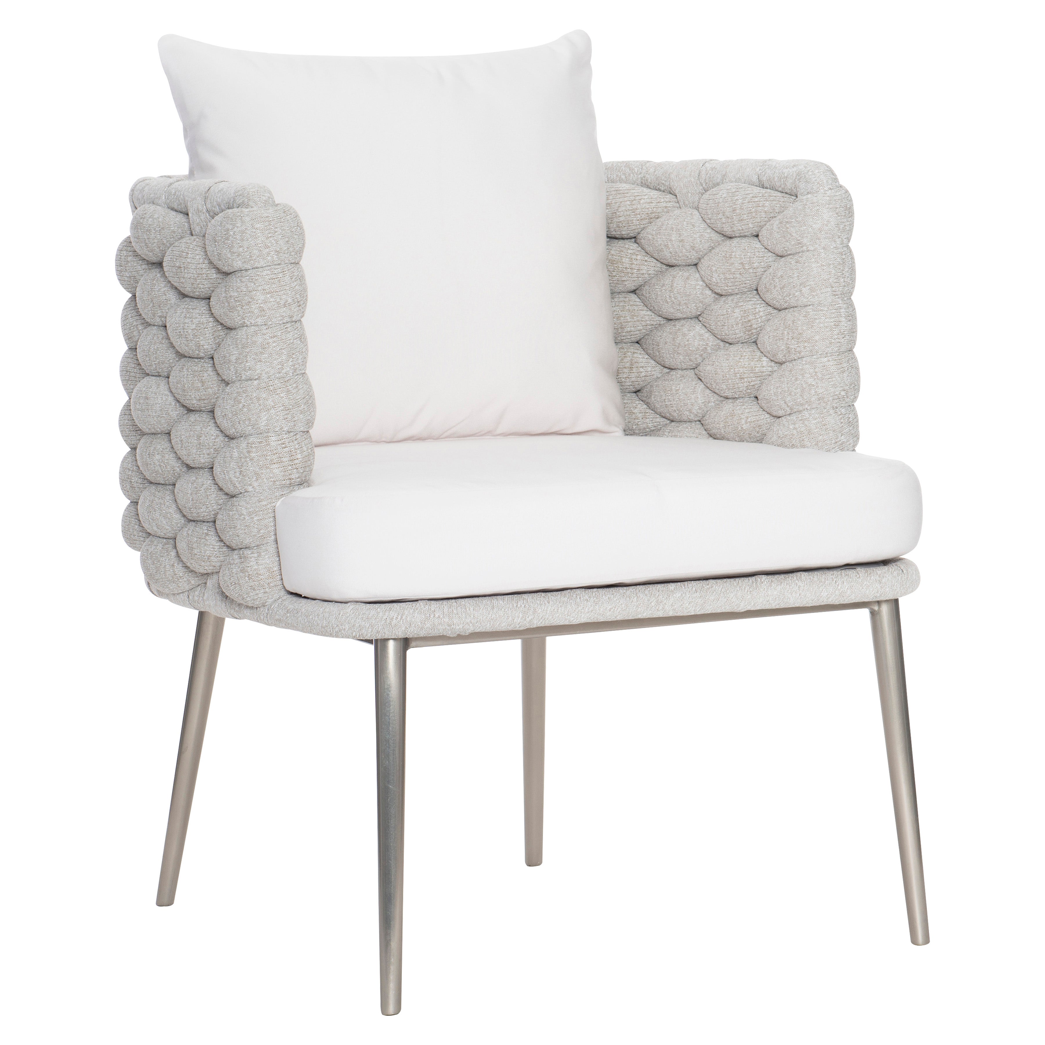 Dining ChairFeaturing an all-weather soft-knit sock weave in Nordic Grey wrapped around an aluminum frame, the Santa Cruz arm...