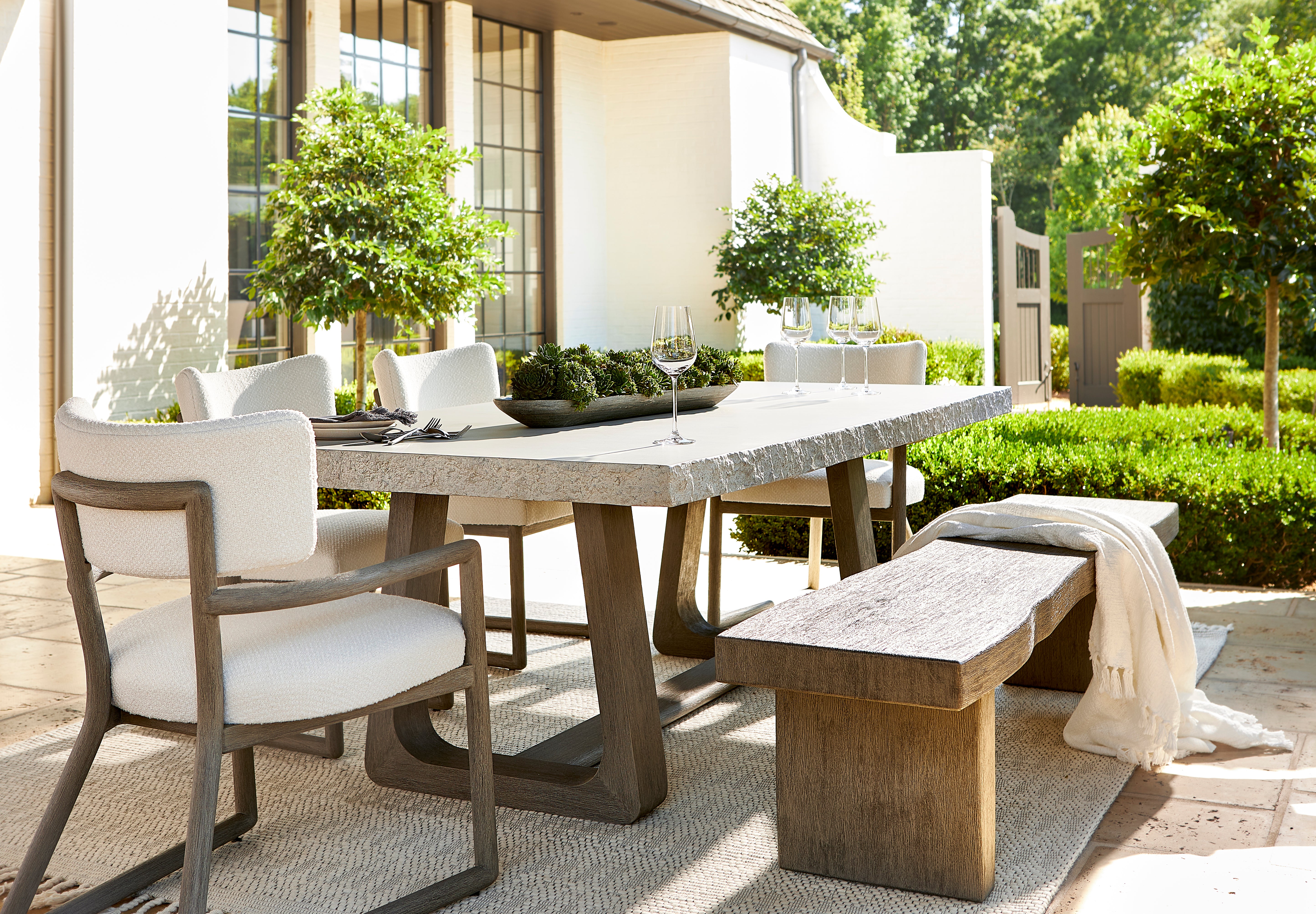 Dining ChairA shapely form with slipcovered style offers a casual yet elegant outdoor look on the Arden arm chair....