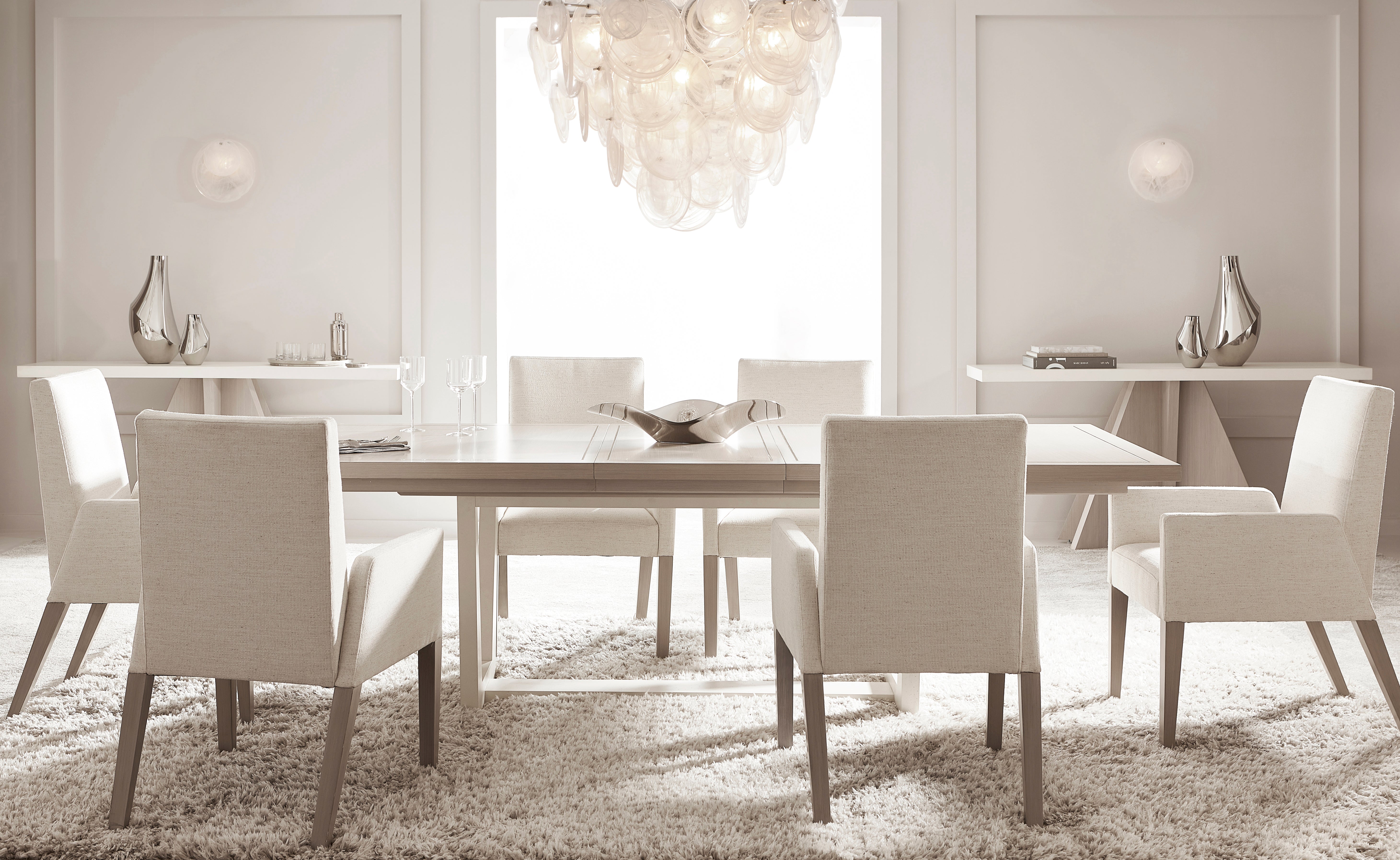 Dining TableThe Stratum dining table combines a modern sensibility with a hint of glamour. The top, finished in Mist,...
