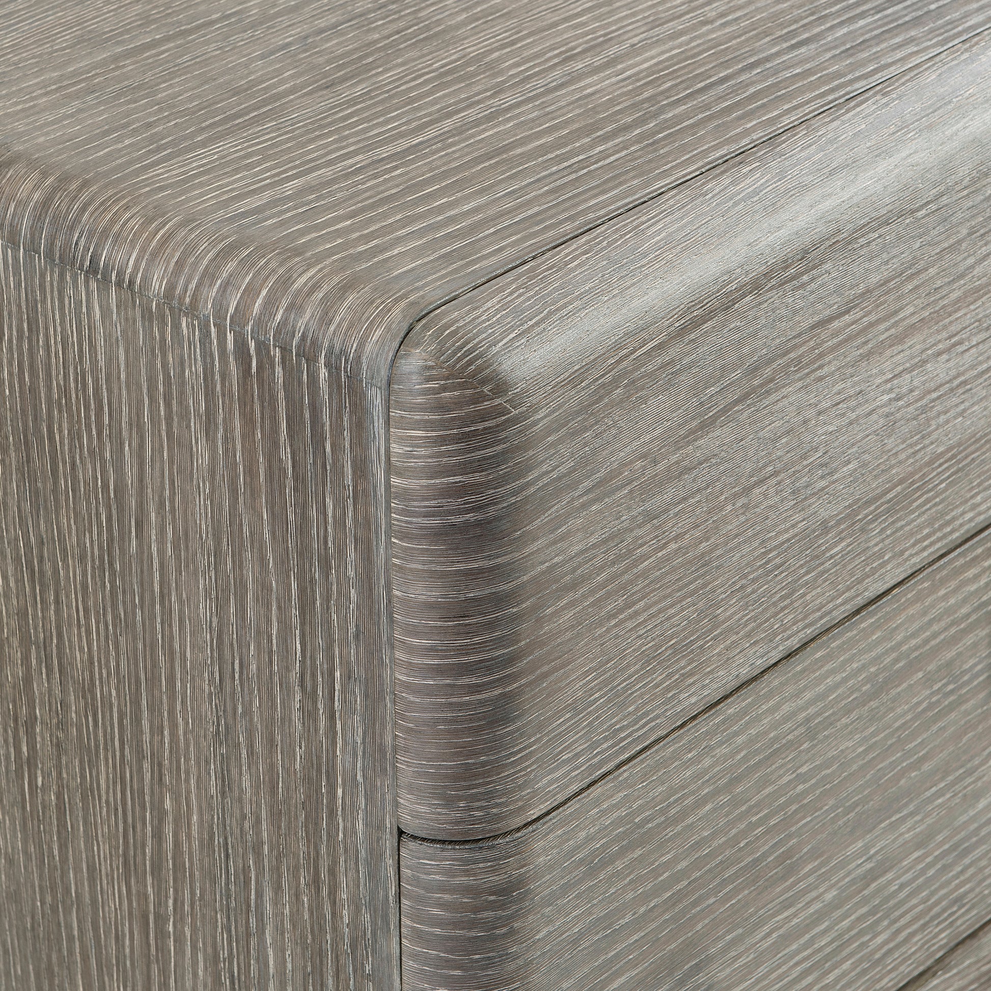 - Six pull-to-open, soft-close drawers with cast aluminum tab pulls in Graphite finish
