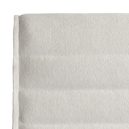 - Headboard has horizontal channels and flange
